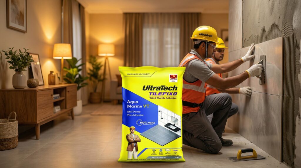 Designed for superior tile bonding performance, Ultratech Tilefixo Aqua Marine VT is a high-quality waterproof tile adhesive made for areas exposed to regular water contact and humidity. If you are looking for a dependable tile adhesive in Lucknow, this product is a smart and long-lasting solution for both homeowners and professionals.